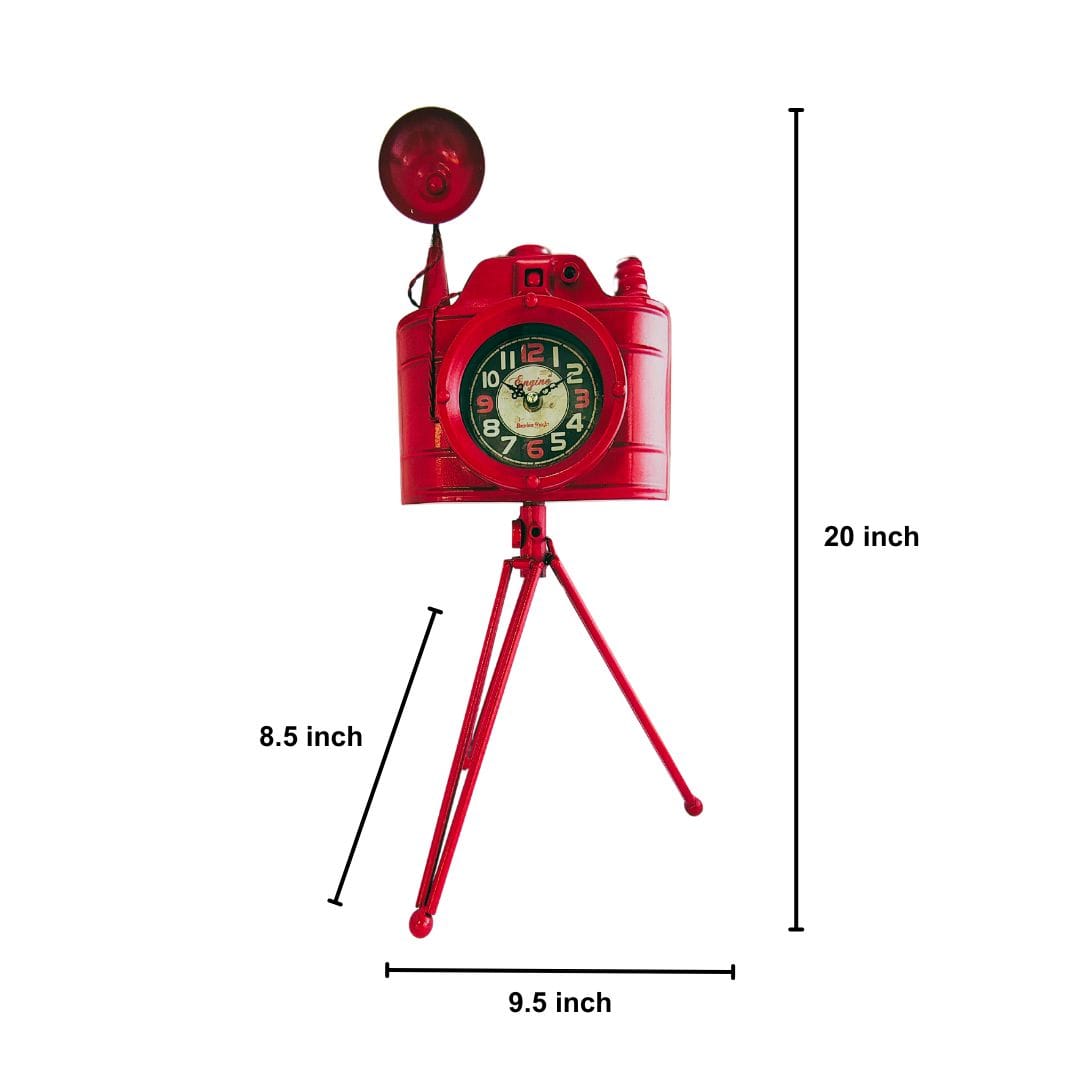 Meticulously crafted from high-quality metal, this showpiece clock is not just a timekeeper but a conversation starter. The detailed design mimics an antique camera, showcasing intricate features that appeal to photography enthusiasts and collectors alike.