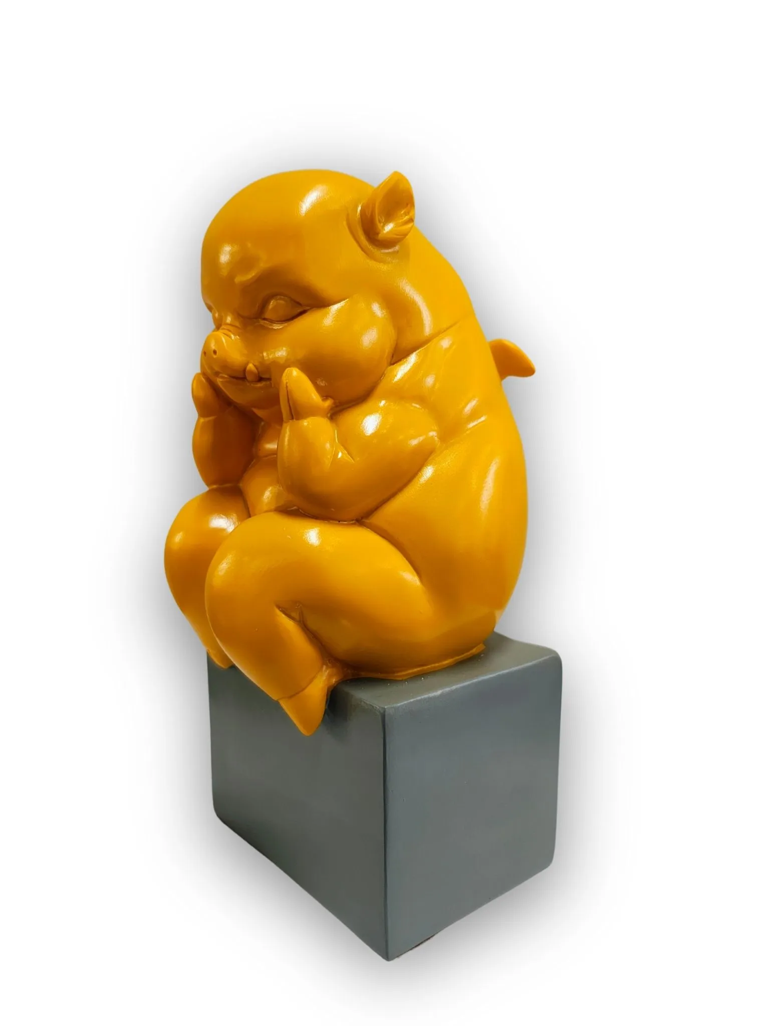 This delightful polyresin showpiece features a cute baby pig with its eyes shut and hands resting on its cheeks, exuding a charming innocence. Perfect for anyone who appreciates whimsical decor, this piece captures the joyful essence of youthful playfulness.