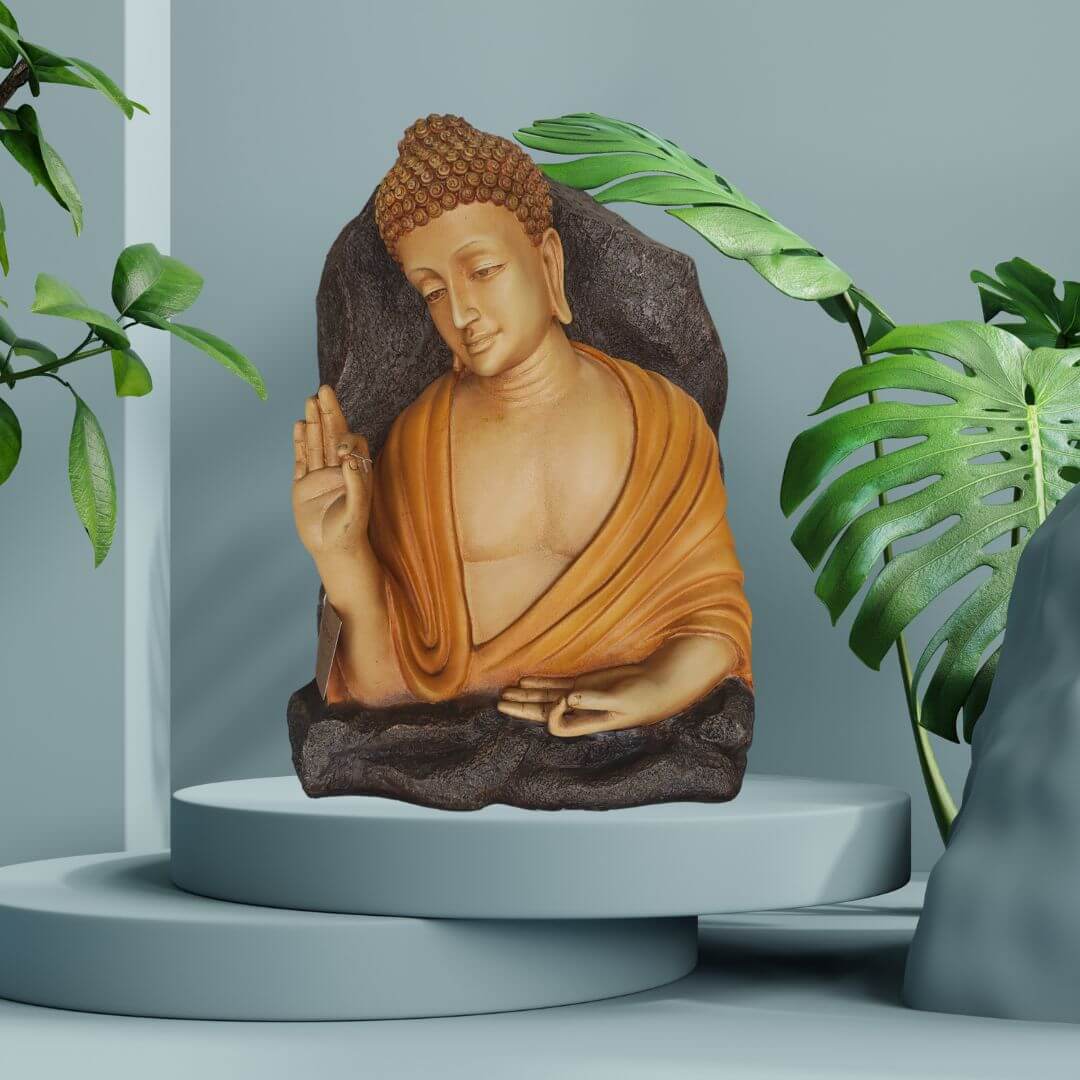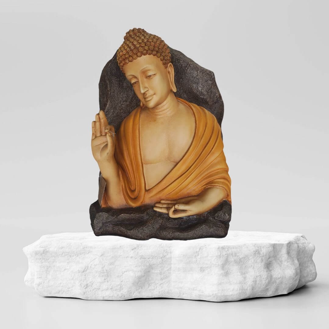 Introducing our stunning large size poly-resin showpiece of the bust of Lord Buddha. This carefully crafted piece captures the serene essence of Lord Buddha, depicted in a peaceful posture that inspires tranquility and mindfulness.