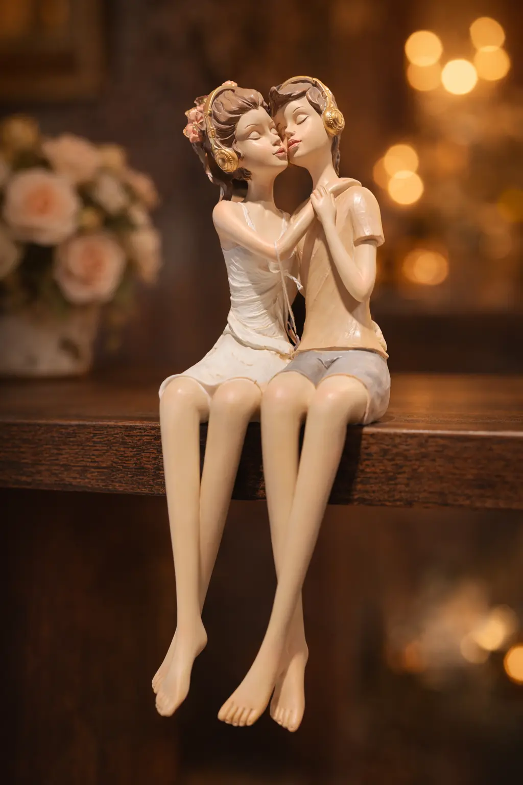 Add a soft romantic touch to your interiors with this elegant couple figurine, beautifully capturing a peaceful moment of togetherness. Designed with dangling legs, this décor piece is perfect for placing on the edge of shelves, cabinets, wall units, or console tables, creating a charming and relaxed look.